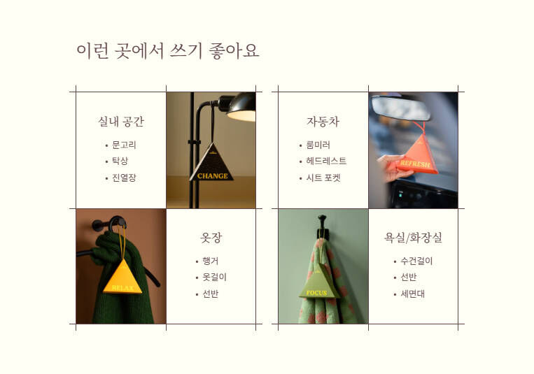 使用方式:開封後,將香氛分袋掛在需要散香的空間,如車內、衣櫃或浴室使用。若想提升香味濃度,可輕輕搖晃香氛袋以釋放更多香氣